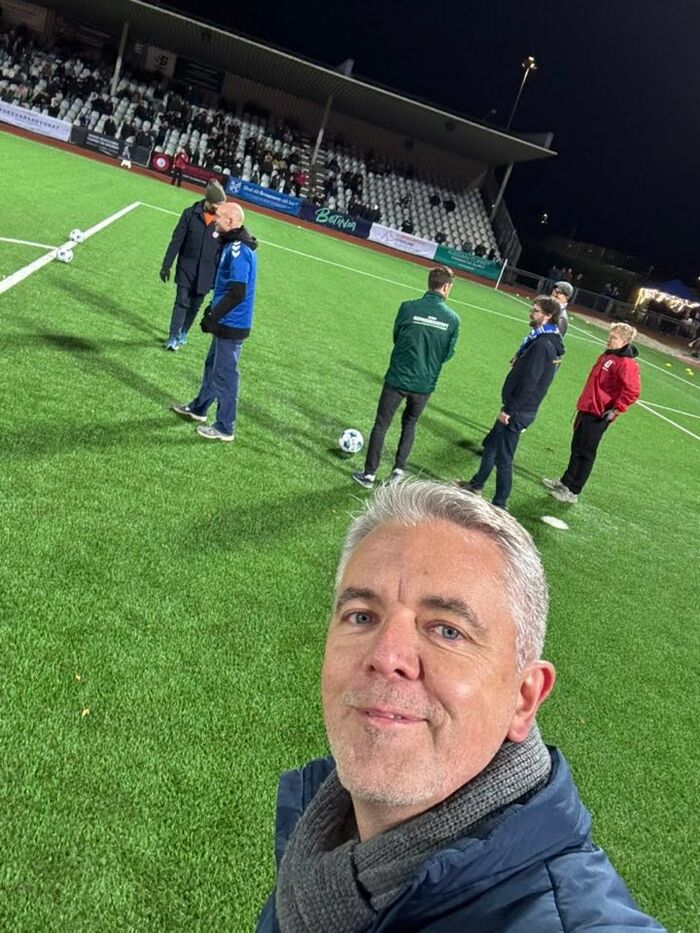 Her skulle én fra hvert parti divertere i øvelsen “læg bolden så tæt på midterpletten som muligt med et spark fra straffesparksfeltet”. En kølig inderside afsendt af undertegnede afgjorde den kamp, endda efter et curling-agtigt bounce på Ole Normann Buchs konservativt lagte bold.